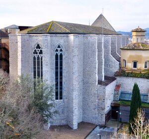 After the fourth tower, there is a straight walk along the wall. You can see the back of Convent de Sant Domènec, which the University of Girona uses.