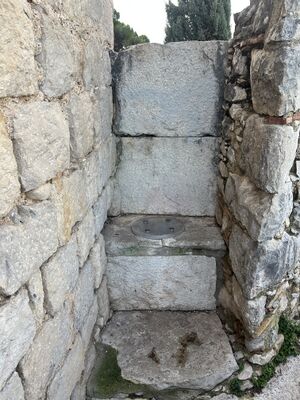 At the fourth tower, there appears to be a medieval toilet:
