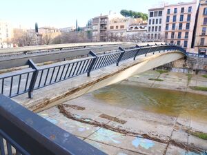 The bridge was built in 1876 by the company of Gustave Eiffel, the same engineer who later designed the Eiffel Tower in Paris.[1] At the time, using metal for bridges was modern and innovative, and the design reflected Girona’s move into a more industrial era. The construction project took almost two years and was completed in February 1877,