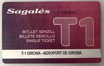 Sagalés operates bus line 607, which connects Girona centre to Girona airport. Go to Estación d'Autobuses de Girona (Girona bus station), which is in Plaça de Espanya. Take the escalators or lift down to the basement to find the bus station. The ticket to get to Girona Airport is called the T1. One ticket costs €2.75.[1]