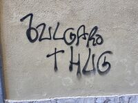What makes him one of the most hated people on the Girona is his willingness to spray his tag on places other graffiti taggera wouldn’t, like historical buildings and street art. In 2024, Bulgaro Thug sprayed his tag on a wall outside the 1,000-year monastery Monestir Sant Daniel[2], generating fury on Twitter. People on Twitter suggested to “make him swallow his spray can", "make him clean all the graffiti in Girona, handcuffed, in an orange jumpsuit and with his head shaved", and "throw him in the Onyar river”. The vice-mayor, Gemma Geis, wrote, "This vandalism is intolerable. I hope the security forces can identify him very soon.”[2]