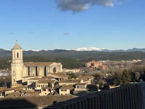 La Muralla is a big medieval wall in Girona that you can walk on for free. The walk along it is called the Passeig de la Muralla and is about 20 minutes long. It is definitely worth doing as you get an amazing view of Girona from the wall. You can see the Cathedral, the Basílica de Sant Feliu, and La Devesa. You can see part of the Pyrenees called the Canigó massif, even though it’s about 85 km away. In winter, the Pyrenees are easily visible because they're covered in snow.