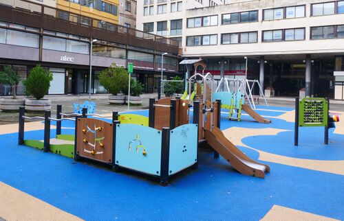 Parc Infantil de Plaça Josep Pla is a playground in a public square called Plaça Josep Pla. There are no roads or cars nearby, making it safe for children to play. The playground was renovated in 2022 at a cost of €61,281, so the equipment is all relatively new.[1] The council claim it is Girona's first fully accessible playground.[1] It has accessible equipment for disabled children, including adapted swings and inclusive spring riders.[1] There is no shade, so avoid it on the hottest summer days.