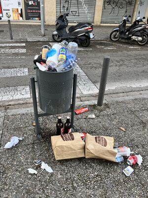 Once the new bin system was rolled out across all of Girona, however, many problems emerged. Trash began piling up outside the bins. Public trash cans began overflowing.